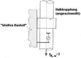 Für den Anschluss eines Rohres mit Halbkupplungen sind die Grenzwerte der aufnehmbaren Schnittgrößen nach Bild 4 zu bestimmen.