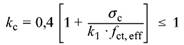 | kc | der Beiwert zur Berücksichtigung des Einflusses der Spannungsverteilung innerhalb der ZugzoneAct vor der Erstrissbildung sowie der Änderung des inneren Hebelarmes beim Übergang in den Zustand II: | |