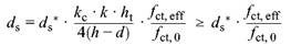 | ds* | der Grenzdurchmesser der Bewehrung nach Tabelle 20 |