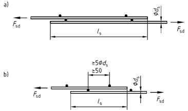 | ls, min = 0,3αa *α1 *lb | > 15ds, > 200 mm |
