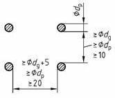 Der lichte Abstand zwischen den Hüllrohren muss mindestens das 0,8fache des äußeren Hüllrohrdurchmessers, jedoch nicht weniger als 40 mm vertikal und 50 mm horizontal betragen, wobei die Absolutmaße auch für rechteckige Hüllrohre gelten.