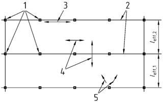 | leff, 1,leff, 2 | die jeweilige effektive Spannweite der Deckenplatten auf beiden Seiten der Fuge rechtwinklig zur Fuge in m (siehe Bild 80) |