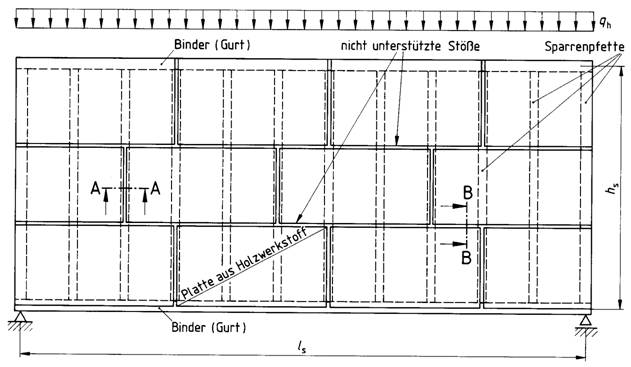 Die rechtwinklig zu den Auflagern verlaufenden freien Ränder von Brettern, Bohlen oder Holzwerkstoffen müssen bei einem Verhältnis lichte Weitelwzur Plattendicked größer als 30 miteinander durch Nut und Feder oder gleichwertige Maßnahmen verbunden werden.