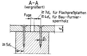 Bei mehreren Lagen ist jede Lage für sich zu nageln, wobei die Nägel versetzt angeordnet werden müssen.