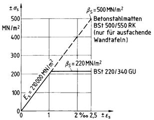 Bild 5: Rechenwerte für die Spannungsdehnungslinie der Betonstähle