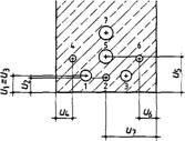 3.2.4.6 Bei Anordnung von Aussparungen in Balken oder in Stegen vonT-, T⊥- oderI-Querschnitten, die die Mindestquerschnittsabmessungen nach den Abschnitten 3.2.2 bzw. 3.2.3 aufweisen, müssen die Mindestachsabstände auch von der Aussparungsseite her eingehalten werden.