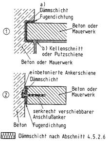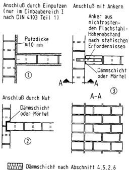 4.1.4.2 Anschlüsse nichttragender Massivwände müssen nach DIN 1045, DIN 1053 Teil 1 und DIN 4103 Teil 1 (z.B. als Verbandsmauerwerk oder als Stumpfstoß mit Mörtelfuge ohne Anker) oder nach den Angaben von Bild 17 bzw. Bild 18 ausgeführt werden. 5)