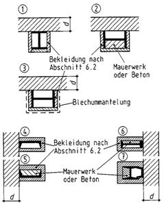 | 1) | Die Angaben gelten sowohl für tragende, raumabschließende als auch für tragende, nichtraumabschließende Wände. |