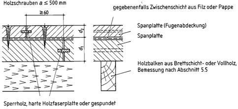 Alle Platten und Bretter sind auf Holzbalken dicht zu stoßen; wegen der Mindestdicke siehe Tabelle 64.