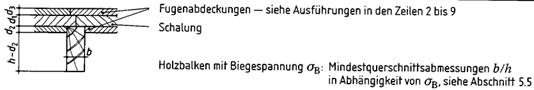 5.3.1.1 Die Angaben von Abschnitt 5.3 gelten für von unten oder von oben beanspruchte Holzbalkendecken nach DIN 1052 Teil 1 mit Holzbalken mindestens der Sortierklasse S 10 bzw. MS 10 nach DIN 4074 Teil 1. Es wird zwischen Decken mit
