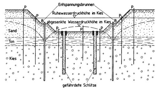 Bild 15. Gespanntes Grundwasser trotz Grundwasserabsenkung
