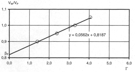 In einem Diagramm wird die Ordinate mit F und die Abszisse mit VW/VPbezeichnet. Anschließend werden zu jedem Volumenverhältnis VW/VPdie ermittelten Werte t aufgetragen. Die ermittelten Wertepaare werden durch eine Gerade verbunden. Der Schnittpunkt mit der Abszisse entspricht dem gesuchten βP-Wert. Bild P.1.1 zeigt ein Beispiel zur grafischen Auswertung des βP-Wertes.
