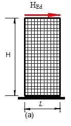 Der Bemessungswiderstand HRd,1 des Rahmenmodells hängt von der Zugfestigkeit der Beton-Riegel ab. Nimmt man eine parabolische Schubflussverteilung über die Wandlänge L gemäß der Balkentheorie und einen Nullpunkt des Moments in der Mitte der Beton-Riegel an, so ist die Tragfähigkeit eines Beton-Riegels erreicht, wenn die Zugspannung auf Grund des maximalen Biegemoments am Schnittpunkt Riegel/Stütze die Zugfestigkeit des Betons überschreitet. Der maximale Wert der Schubbeanspruchung HEd ergibt sich aus Gleichung (1):