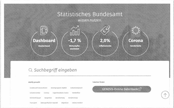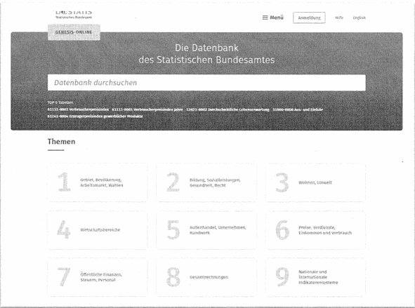 Schritt 1: Auf der Startseite des statistischen Bundesamtes "GENESIS-Online Datenbank" auswählen.