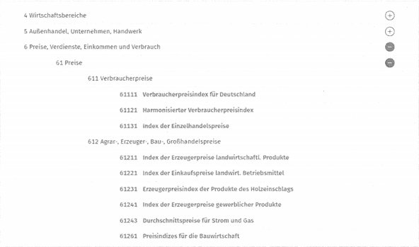 Schritt 3: Untermenü "61 Preise" ausklappen und "61241 Index der Erzeugerpreise gewerblicher Produkte" auswählen