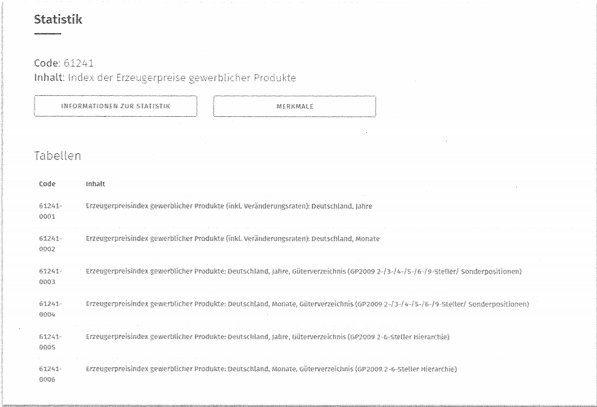 Schritt 4: "61241-004 Erzeugerpreise gewerblicher Produkte: Deutschland, Monate, Güterverzeichnis (GP2009-2-/3-/4-/5-/6-/9-Steller/Sonderpositionen)" auswählen