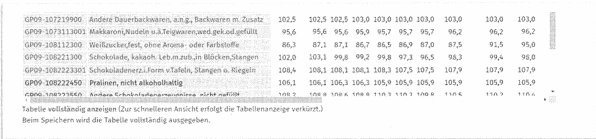 Anschließend kann mit Strg+F ein Suchfeld geöffnet werden, in das z.B."GP09-16" für die Produktgruppe Holz eingetragen werden kann, um die Treffer in der Tabelle zu markieren.