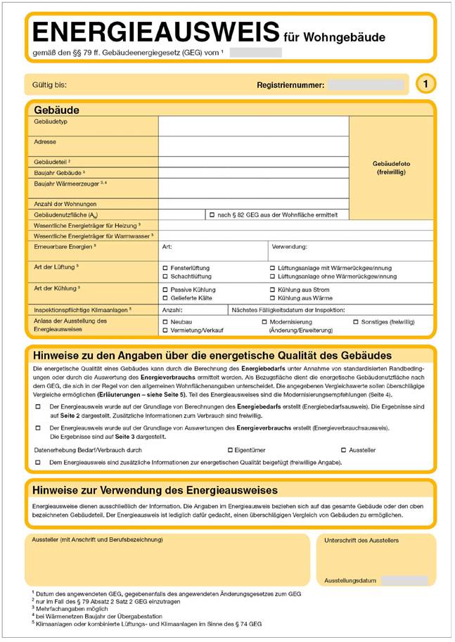 Die Bekanntmachung enthält nach § 85 Absatz 8 GEG die Muster zu den Energiebedarfs- und den Energieverbrauchsausweisen, nach denen Energieausweise auszustellen sind, sowie Muster für den Aushang von Energieausweisen nach § 80 Absatz 6 und 7 GEG.