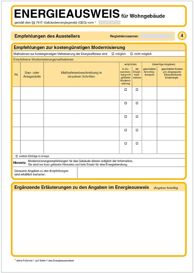 Teil eines Energieausweises sind auch die Modernisierungsempfehlungen nach § 84 GEG.
