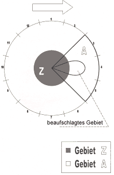 (1) Die vom Genehmigungsinhaber durchzuführenden Maßnahmen zur Überwachung der Umgebung im Störfall/Unfall sind von den zuständigen Behörden anlagen- und standortspezifisch gemäß Tabelle B.3 festzulegen. Dabei sollen die Maßnahmen so getroffen werden, dass über die Verteilung der Mess- und Probenentnahmeorte für jede meteorologische Situation erreicht wird, dass der Genehmigungsinhaber im Störfall/Unfall vorrangig ein zentrales Gebiet in unmittelbarer Umgebung der Anlage (Entfernung bis maximal 2 km) überwacht (vergleiche Gebiet Z in Abbildung B.1).