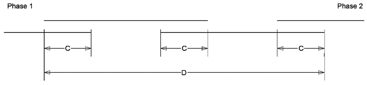 Um die festgelegten Phasentrennstrecken befahren zu können, darf der Abstand zwischen den Stromabnehmern höchstens 400 m betragen; dies ist die größte Zuglänge. Zusätzlich müssen die Abstände zwischen drei aufeinanderfolgenden Stromabnehmern mehr als 143 m betragen. Der mittlere der drei Stromabnehmer kann an beliebiger Stelle angebracht sein. Zwischen den in Betrieb befindlichen Stromabnehmern darf keine elektrische Verbindung bestehen. Bild H.5 zeigt die Anordnung der Stromabnehmer.