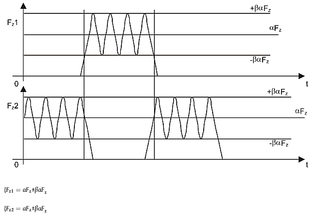 Fz ist eine statische Kraft. Die durch den Koeffizienten a definierten Kräfte, werden als "quasistatisch" angesehen. Die durch den Koeffizienten βdefinierten Kräfte werden als "dynamisch" angesehen.