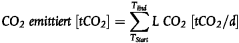 CO2-Emissionen [t CO2] = (Input - Produkte - Export - Bestandsveränderungen) * Umsetzungsfaktor CO2/C