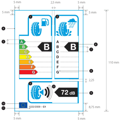 Wird ein Reifentyp für mehr als eine Reifenklasse zugelassen (z.B. C1 und C2), sollte zur Ermittlung der Kraftstoffeffizienzklasse dieses Reifentyps die für die höchste Reifenklasse (also C2, nicht C1) geltende Skala verwendet werden.