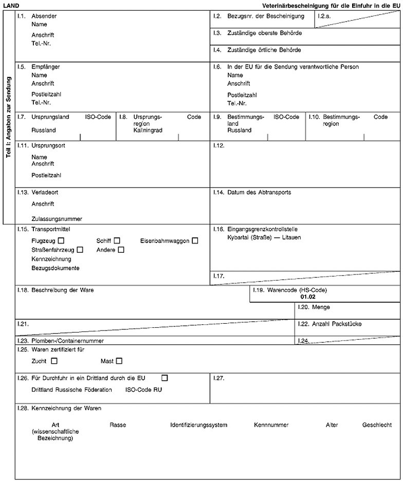 Muster-Veterinärbescheinigungen 16 16a 17 20 20a