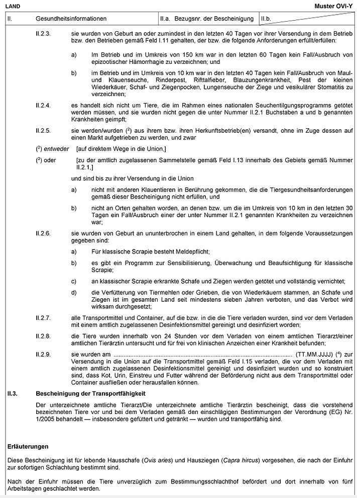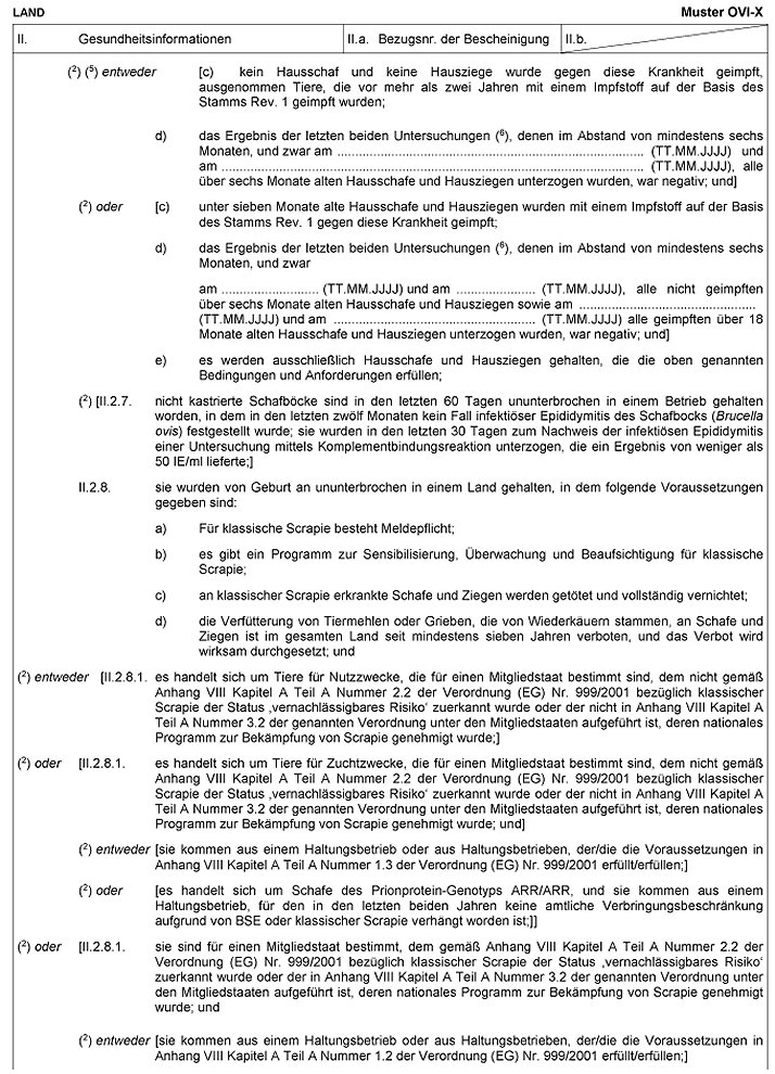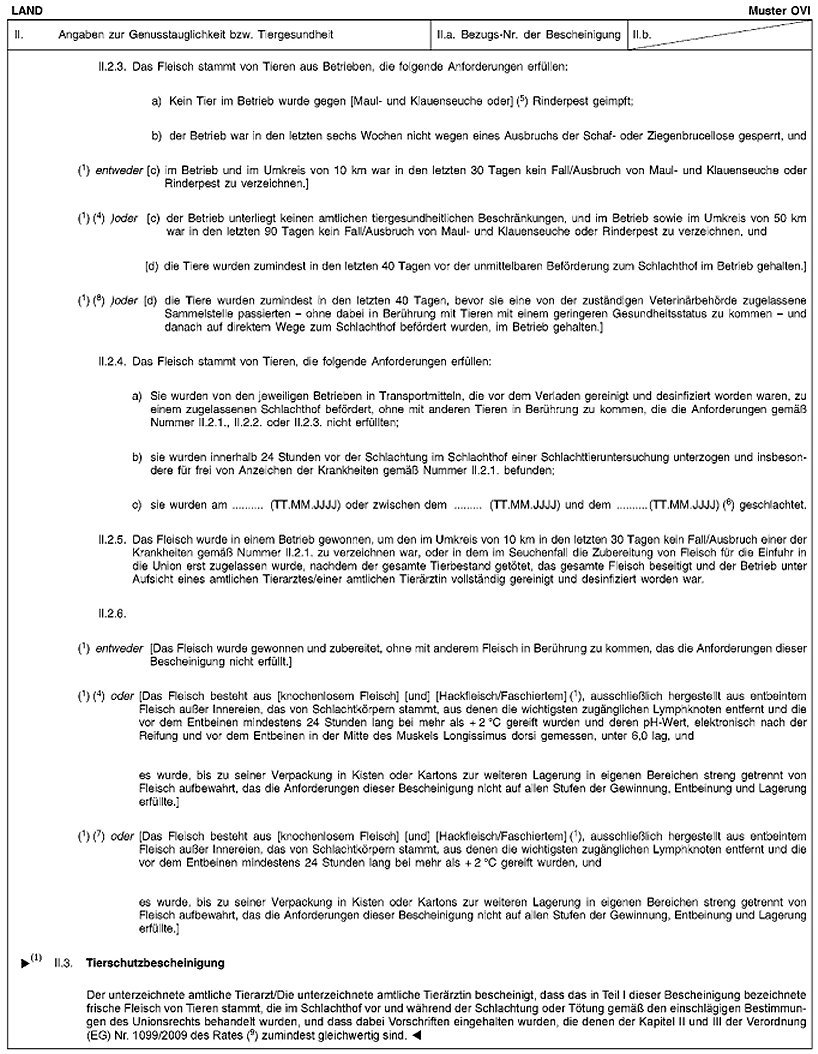 | " OVI": | Veterinärbescheinigung für frisches Fleisch, einschließlich Hackfleisch/Faschiertem, von Hausschafen (Ovis aries) und Hausziegen (Capra hircus) |
