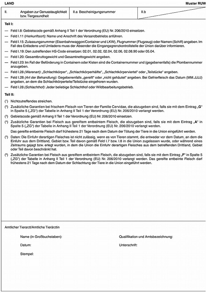 | Erläuterungen zum Ausfüllen der Veterinärbescheinigungen (gemäß Artikel 18) |
