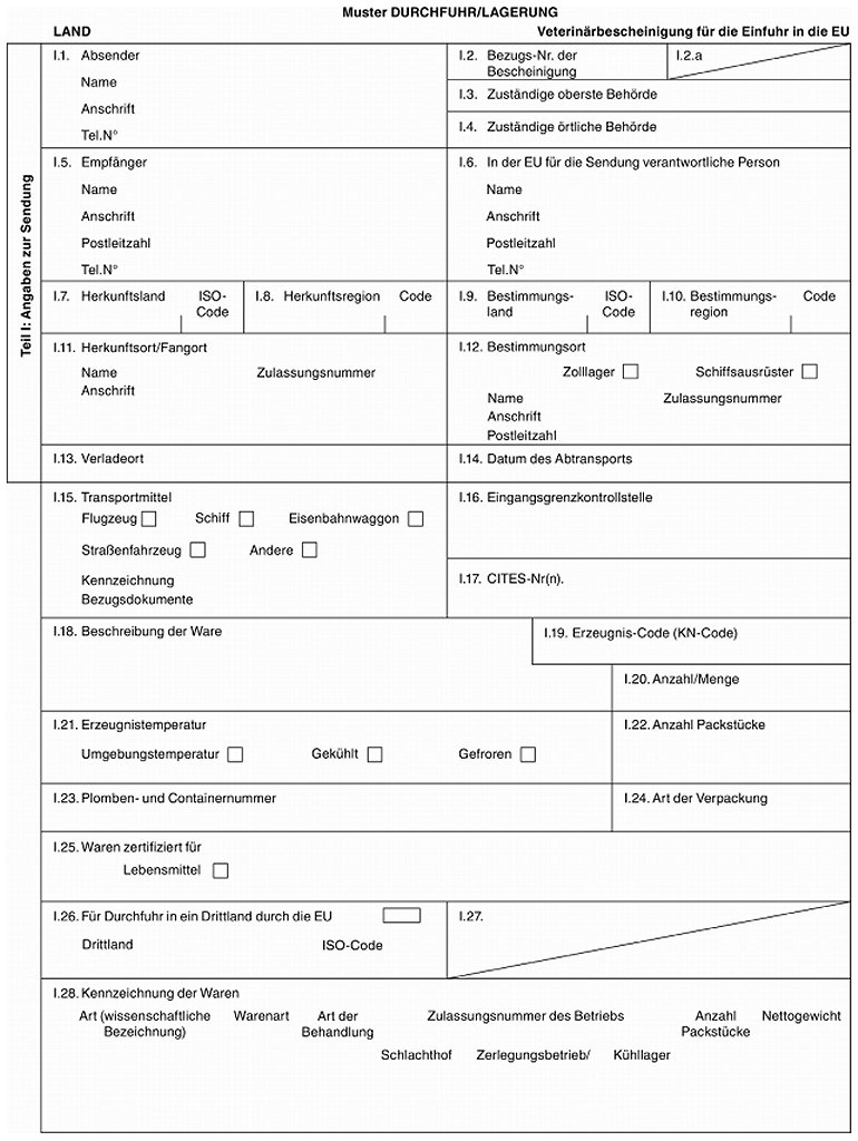 | Muster Durchfuhr/Lagerung | Anhang III |