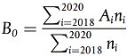 Der Wert B0 wird als gewichteter Durchschnitt des Verhältnisses der Summe der Masse der unvollständigen Basisfahrzeuge in fahrbereitem Zustand für alle in dem Kalenderjahr zugelassenen Mehrstufenfahrzeuge und der Standardmasse, die gemäß Anhang XII Abschnitt 5 der Verordnung (EG) Nr. 692/2008 berechnet wird, zur Masse der Basisfahrzeuge in fahrbereitem Zustand für alle Mehrstufenfahrzeuge, die in den Kalenderjahren 2015, 2016 und 2017 zugelassen wurden, berechnet.