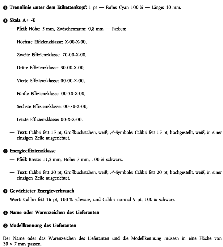 | Energieeffizienzklassen | Anhang VI |