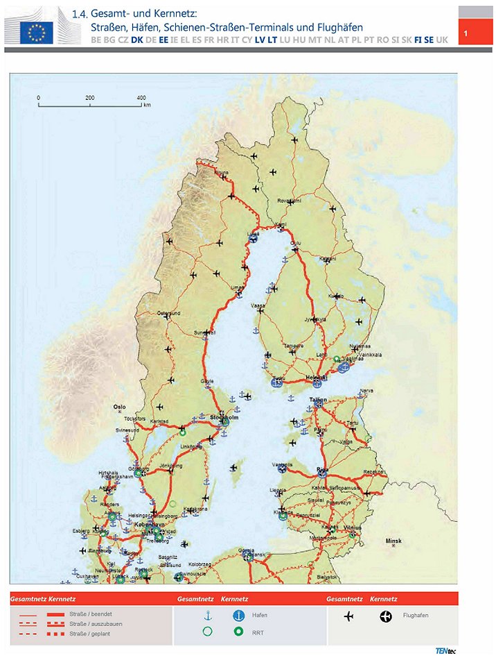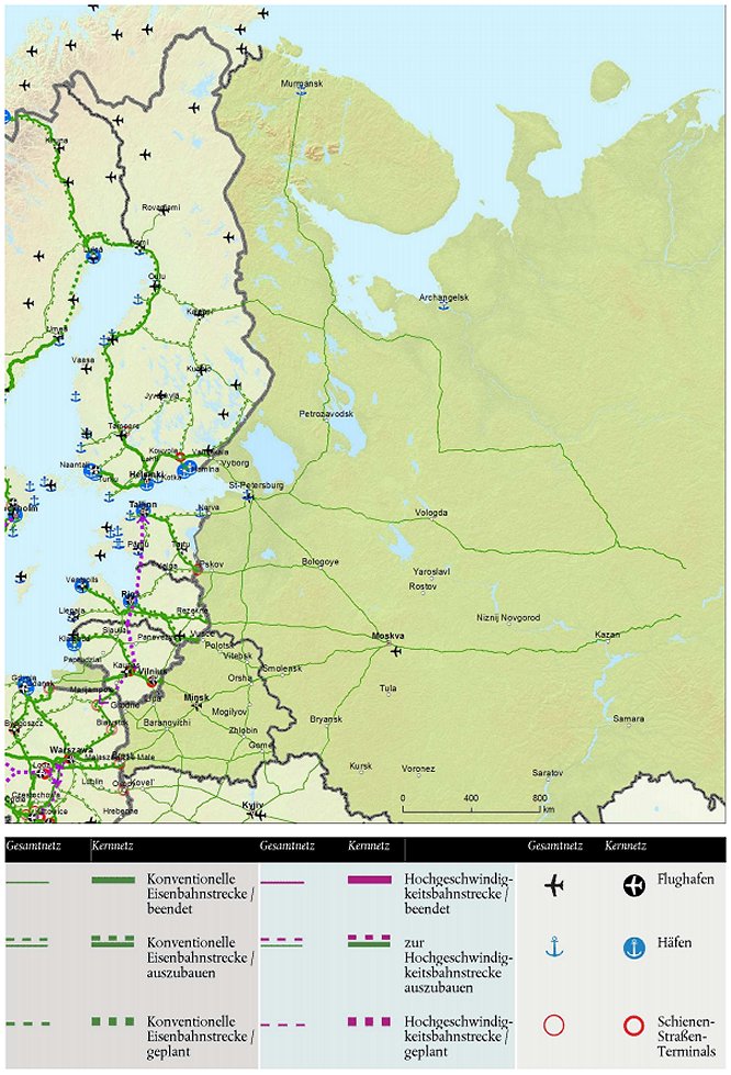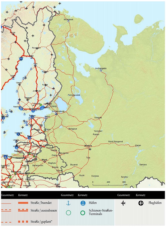 17.2. Indikative Ausdehnung auf Nachbarländer Gesamtnetz: Straßen, Häfen, Schienen-Straßen-Terminals und Flughäfen Verkehrs- und Logistikpartnerschaft der Nördlichen Dimension: Belarus, Russische Föderation |