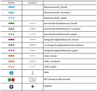 12.3. Indikative Ausdehnung auf Nachbarländer Gesamtnetz: Eisenbahnstrecken und Flughäfen Kernnetz: Eisenbahnstrecken (Personenverkehr) und Flughäfen Schweiz / Suisse / Svizzera / Svizra - Liechtenstein |