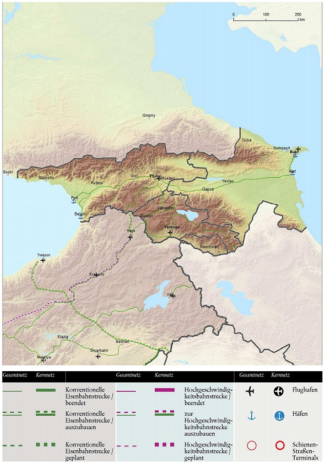 15.1. Indikative Ausdehnung auf Nachbarländer Gesamtnetz: Eisenbahnstrecken, Häfen, Schienen-Straßen-Terminals und Flughäfen Verkehrsnetz Östliche Partnerschaft: Armenien, Aserbaidschan, Georgien |