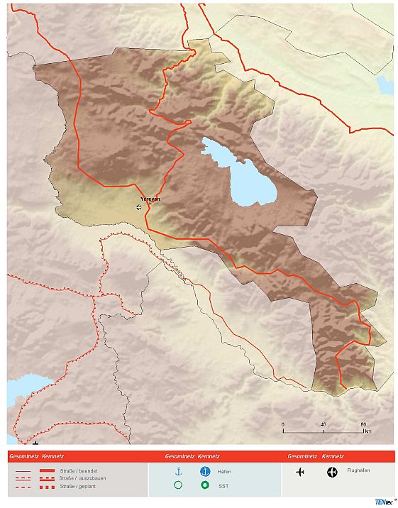 15.4. Indikative Karten des Kernnetzes in der Republik Armenien, Straßen Gesamtnetz und Kernnetz: Straßen, Häfen, Schienen-Straßen-Terminals und Flughäfen Verkehrsnetz Östliche Partnerschaft: Republik Armenien |