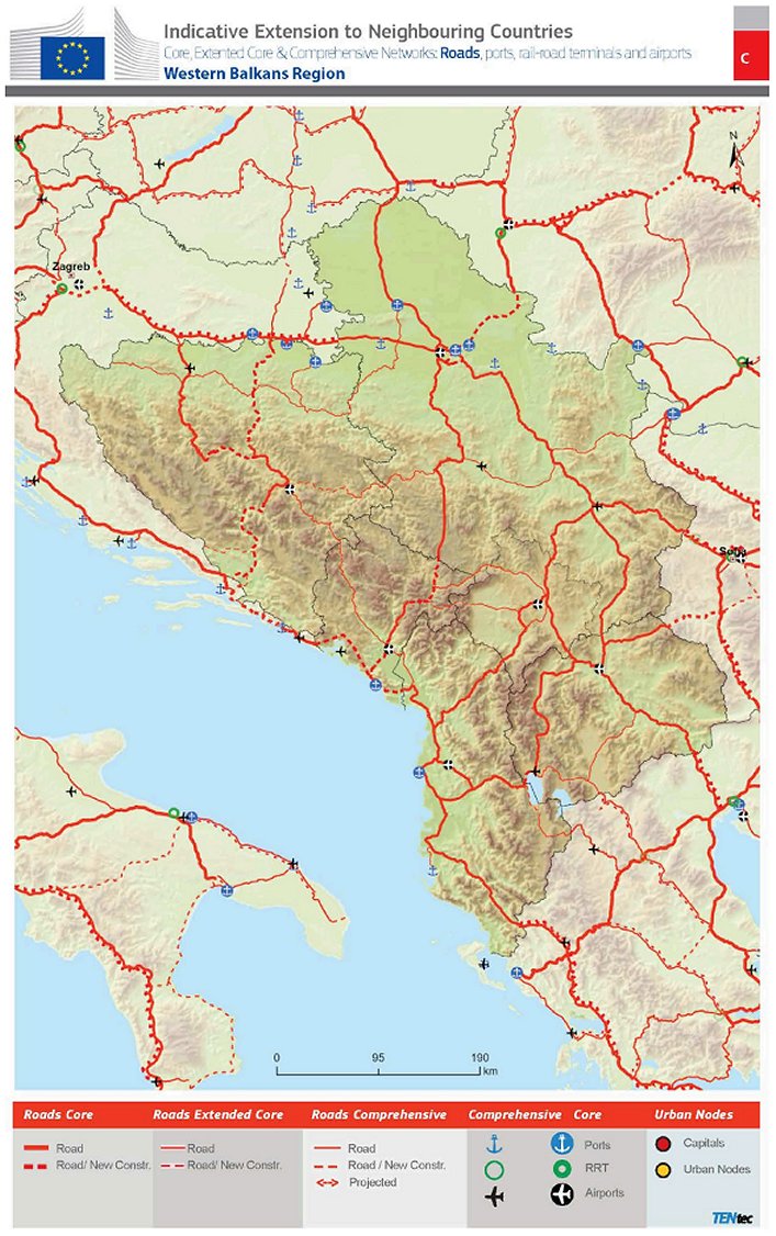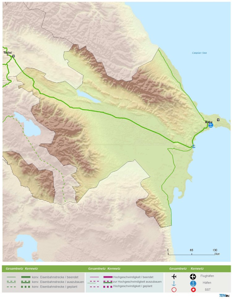 15.6. Indikative Karten des Kernnetzes in Aserbeidschan, Straßen Gesamtnetz und Kernnetz: Straßen, Häfen, Schienen-Straßen-Terminals und Flughäfen Verkehrsnetz Östliche Partnerschaft: Aserbeidschan |