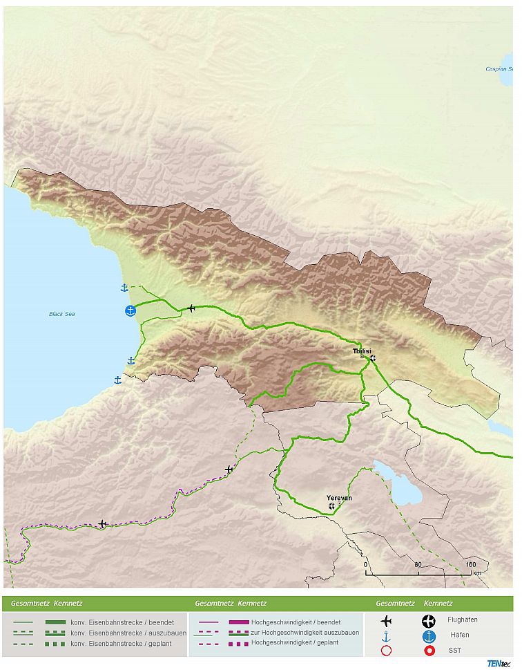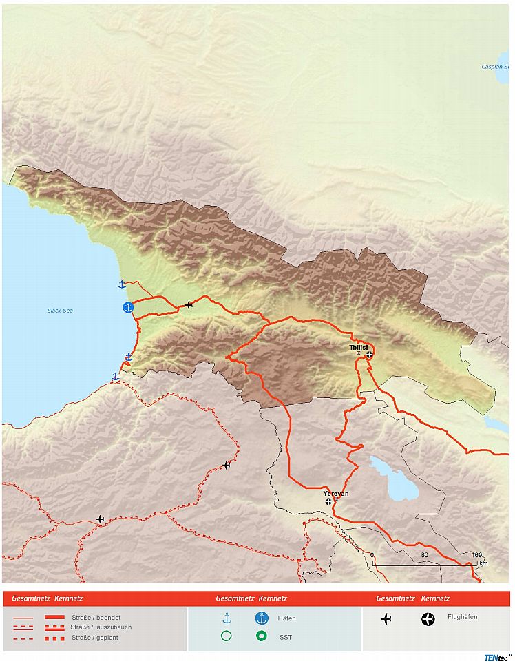 15.8. Indikative Karten des Kernnetzes in Georgien, Straßen Gesamtnetz und Kernnetz: Straßen, Häfen, Schienen-Straßen-Terminals und Flughäfen Verkehrsnetz Östliche Partnerschaft: Georgien |