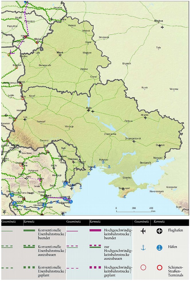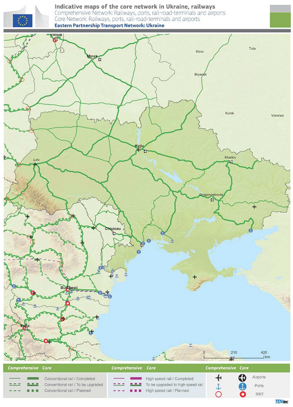 16.1. Indikative Ausdehnung auf Nachbarländer Gesamtnetz: Eisenbahnstrecken, Häfen, Schienen-Straßen-Terminals und Flughäfen Verkehrsnetz Östliche Partnerschaft: Belarus, Republik Moldau, Ukraine |