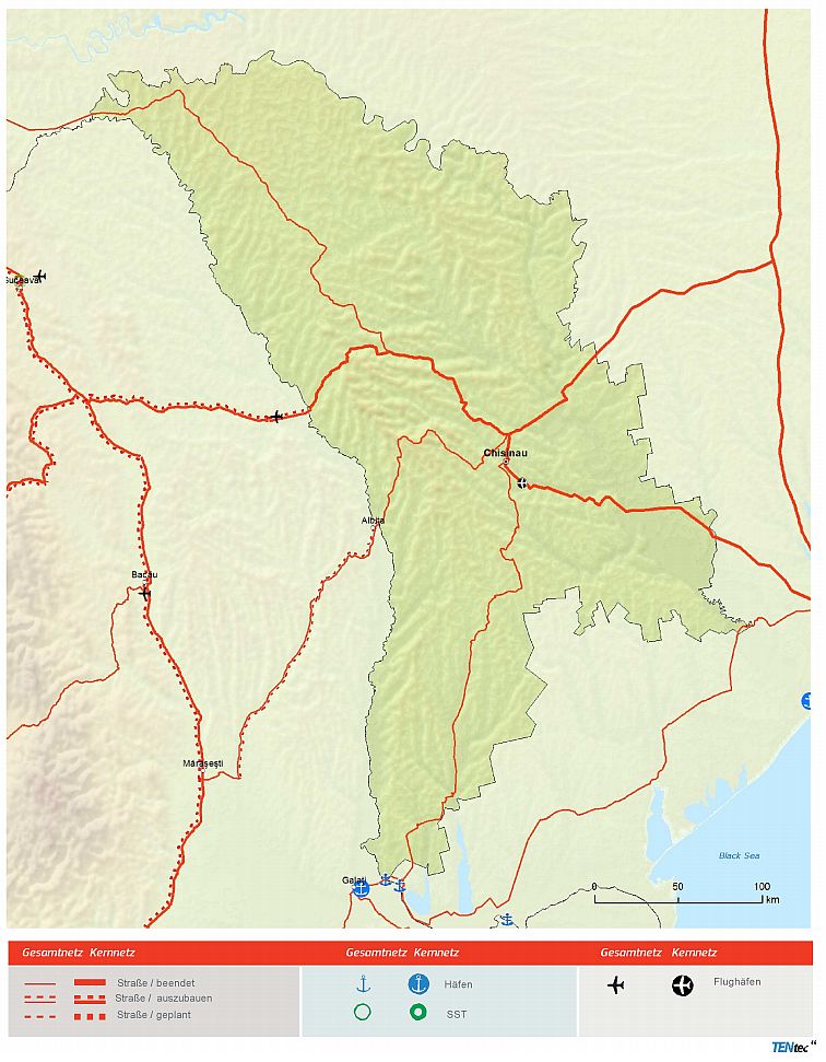 16.6. Indikative Karten des Kernnetzes in der Republik Moldau, Straßen Gesamtnetz und Kernnetz: Straßen, Häfen, Schienen-Straßen-Terminals und Flughäfen Verkehrsnetz Östliche Partnerschaft: Republik Moldau |