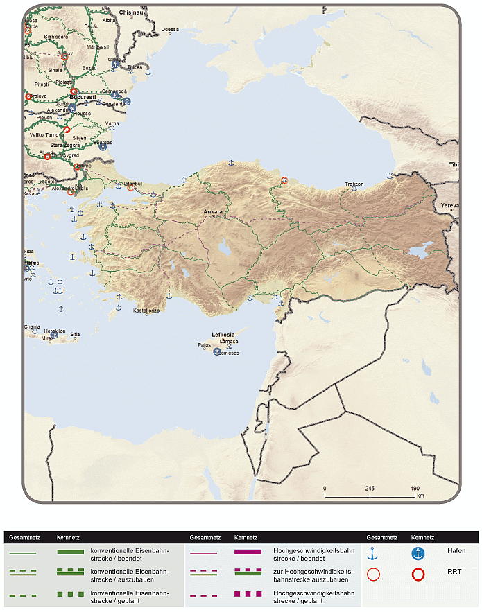 14.3. Indikative Ausdehnung auf Nachbarländer Gesamtnetz: Eisenbahnstrecken und Flughäfen Türkiye |
