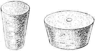Hierher gehören Stopfen aus Presskork, die nicht zylindrisch sind. Sie sind z.B. konisch und können in der Mitte auch ein Loch haben: