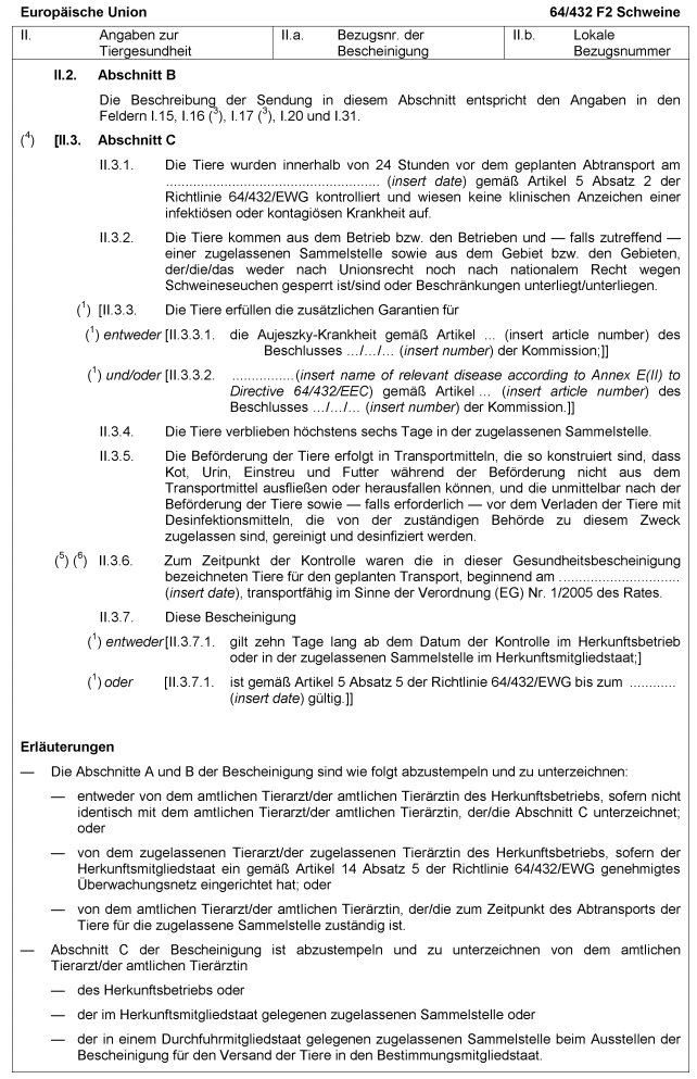 Muster 2 Tiergesundheitsbescheinigung für Zucht-/Nutz-/Schlachtschweine