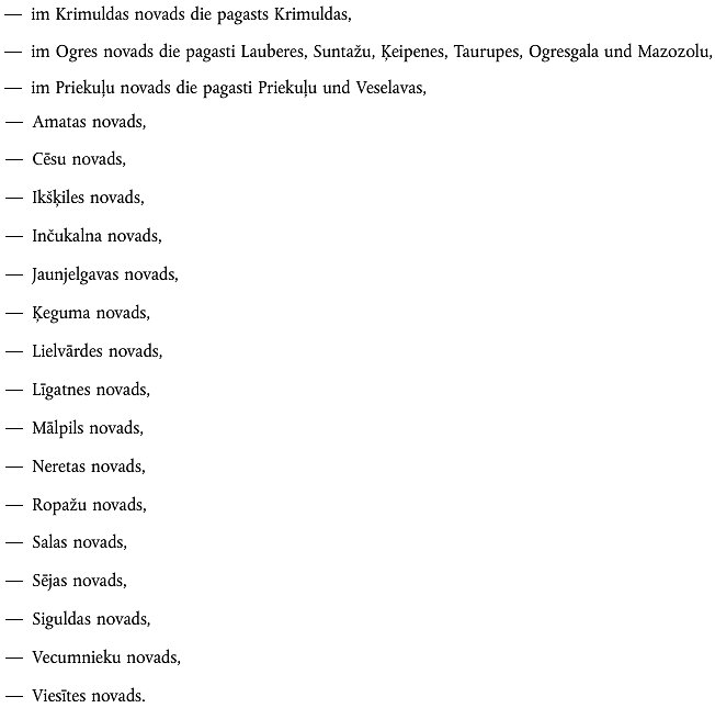 Die folgenden Gebiete in Lettland: