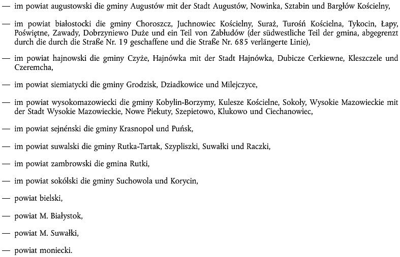 Die folgenden Gebiete in Polen: