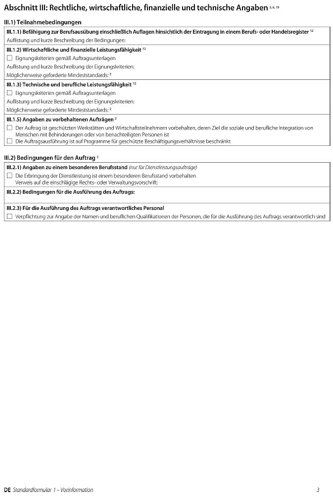 | Abschnitt III: Rechtliche, wirtschaftliche, finanzielle und technische Angabe |