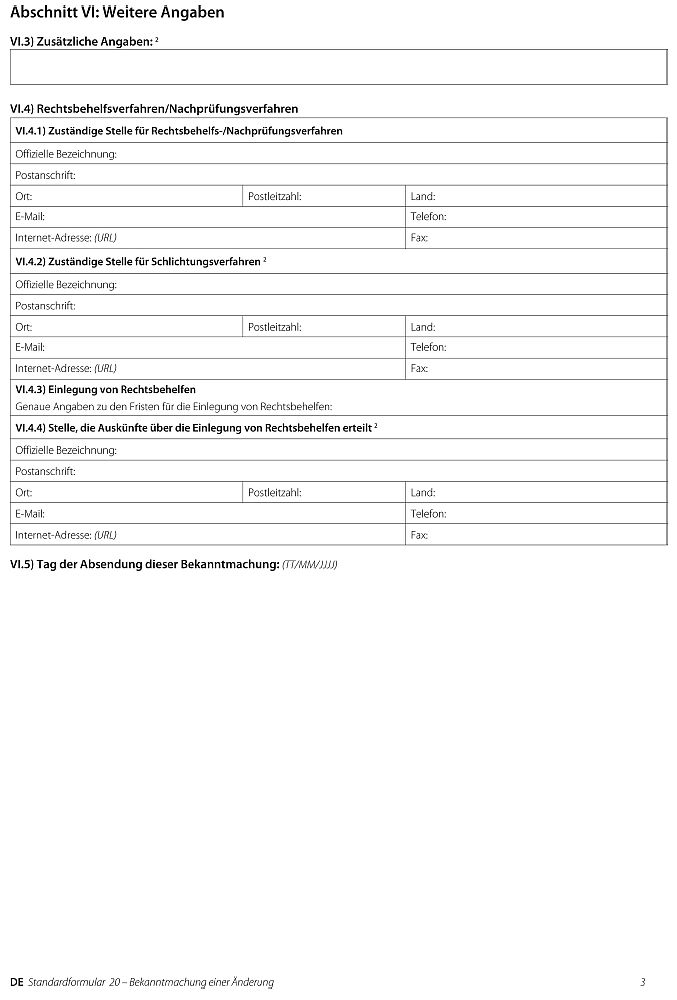 | Standardformular 20: "Bekanntmachung einer Änderung" | Anhang XVII |