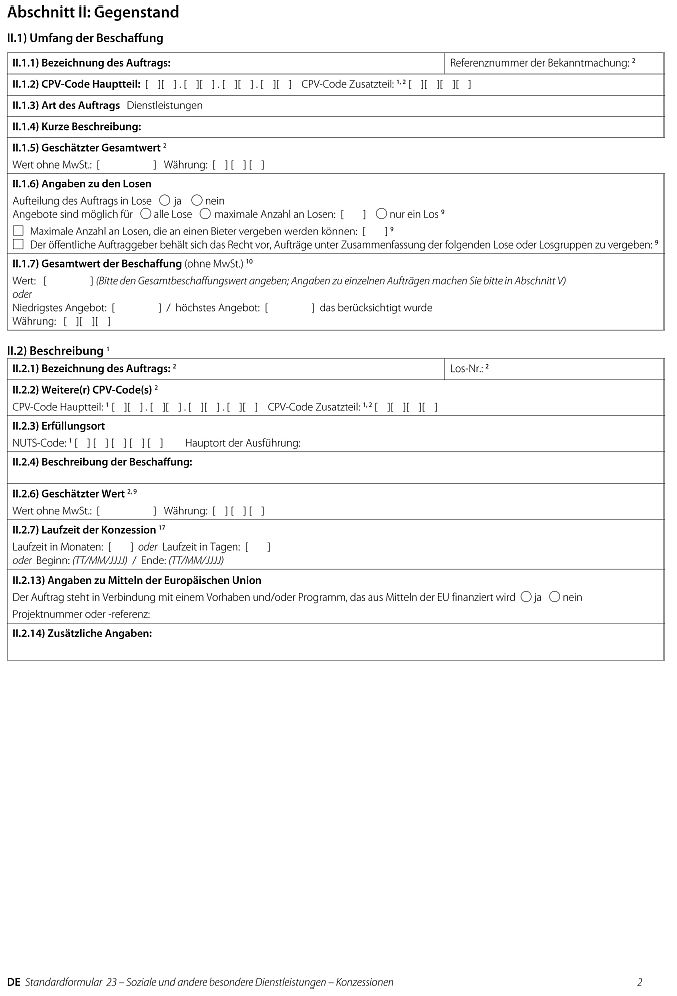 | Standardformular 2: "Auftragsbekanntmachung" | Anhang II |